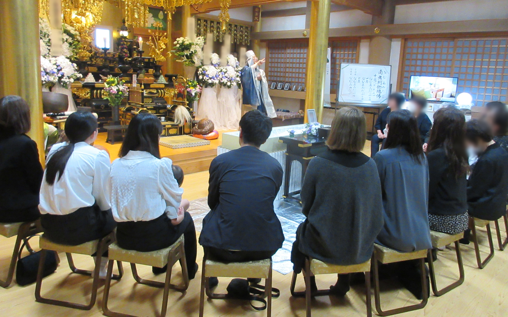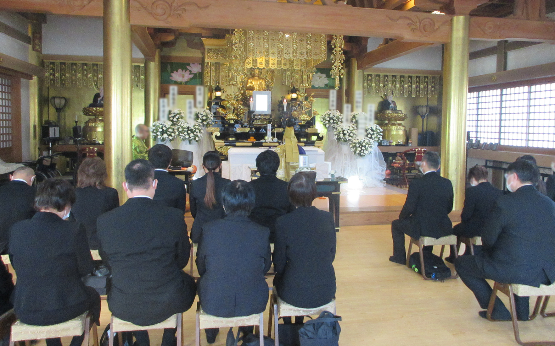 生前より、何かあったらこのお寺でお葬式を…とご家族は聞いていたそうです。厳格なイメージがあるお寺の本堂でのお葬式ですが、大好きだったお酒を思い出コーナーに飾り、ご参列の方々にメモリアルDVDを観ていただき、和や…